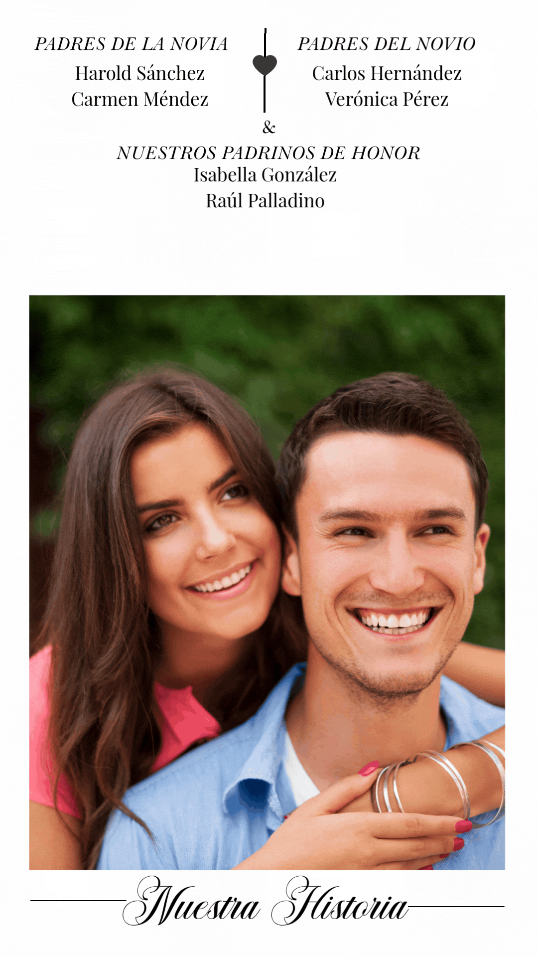 Con gran alegría, nos complace anunciar que hemos decidido unir nuestras vidas en matrimonio. Este día especial es el comienzo de un nuevo capítulo en nuestra historia, un capítulo que queremos escribir junto a ustedes, nuestros amigos y familiares más queridos.